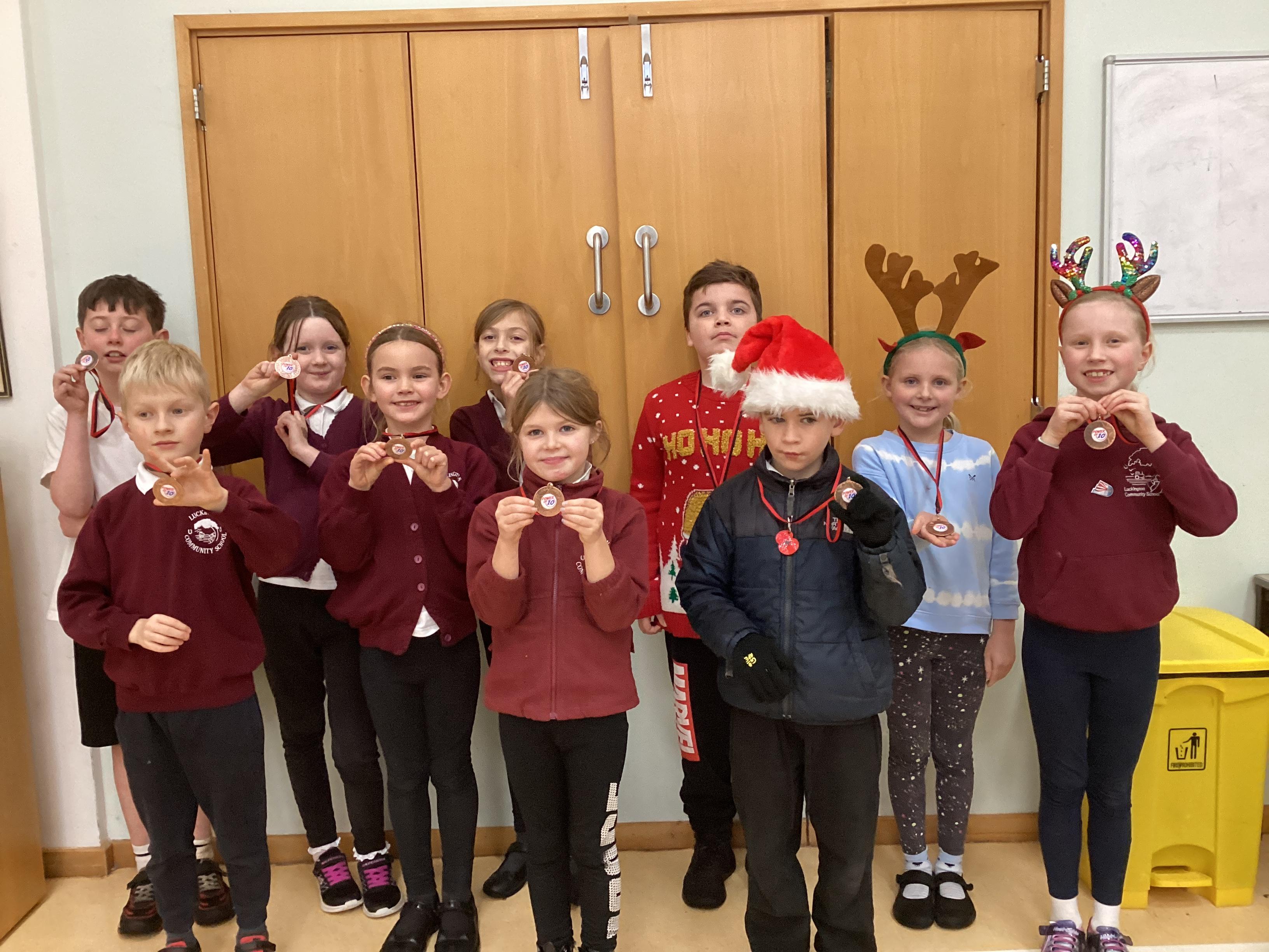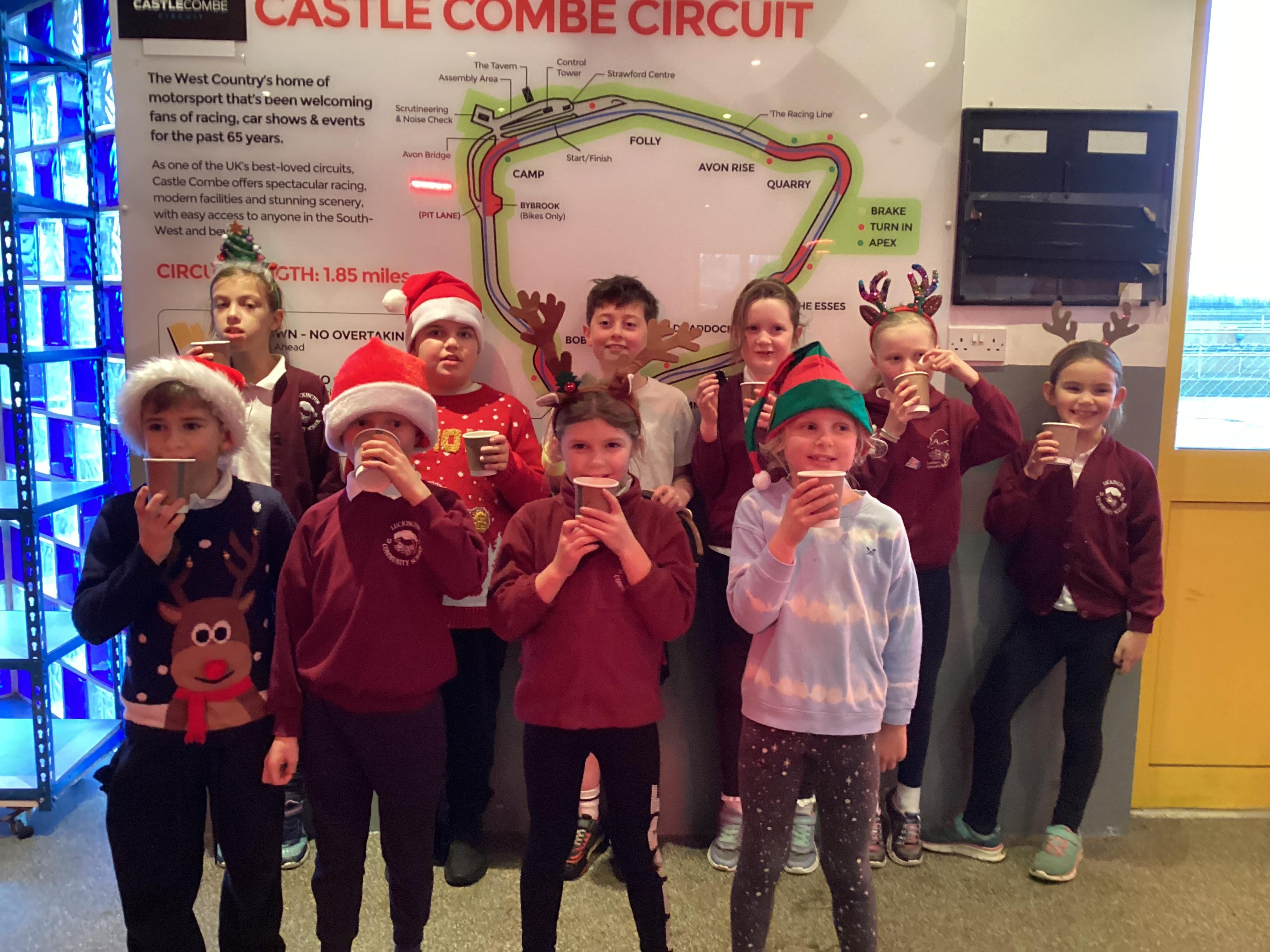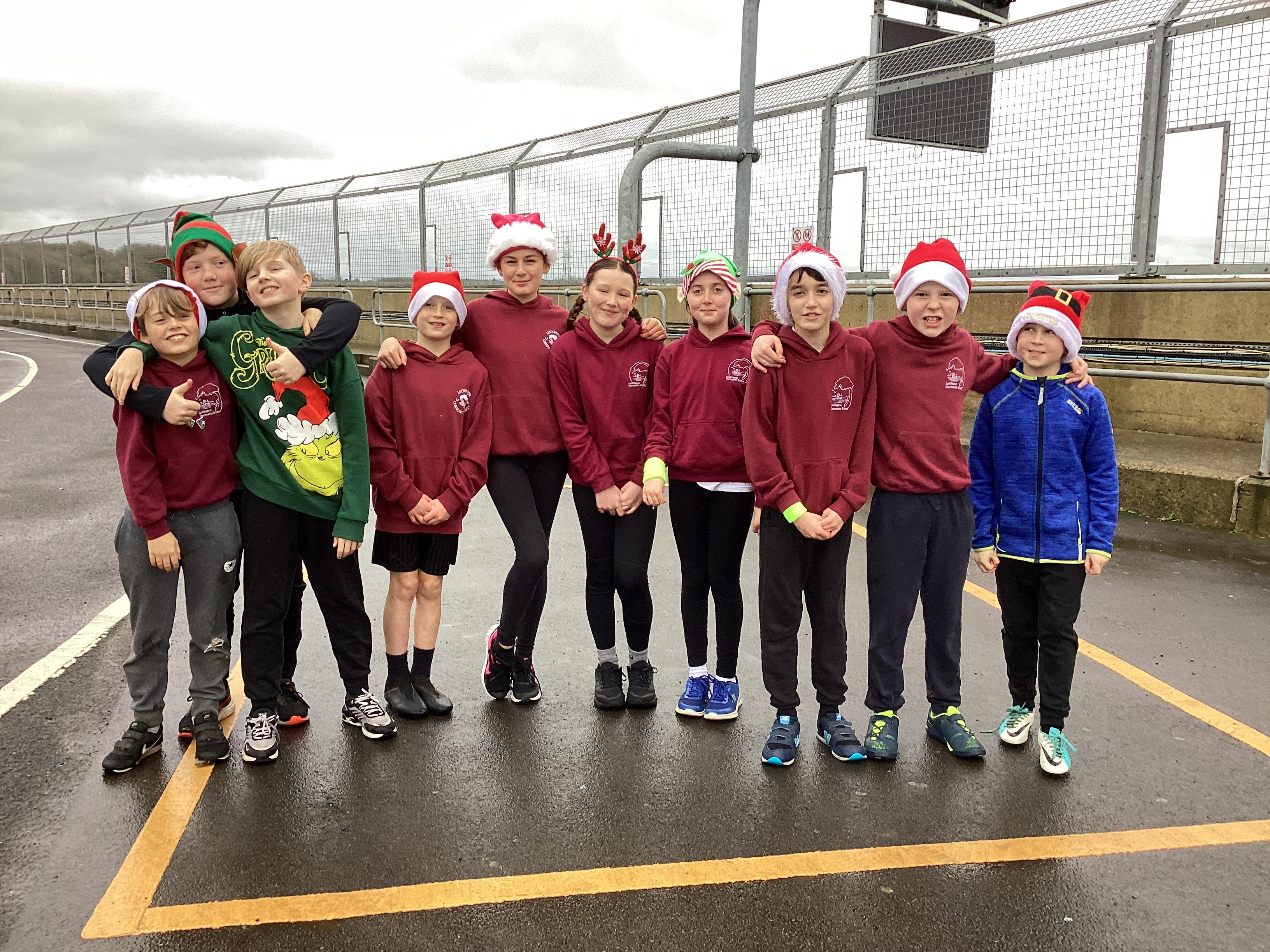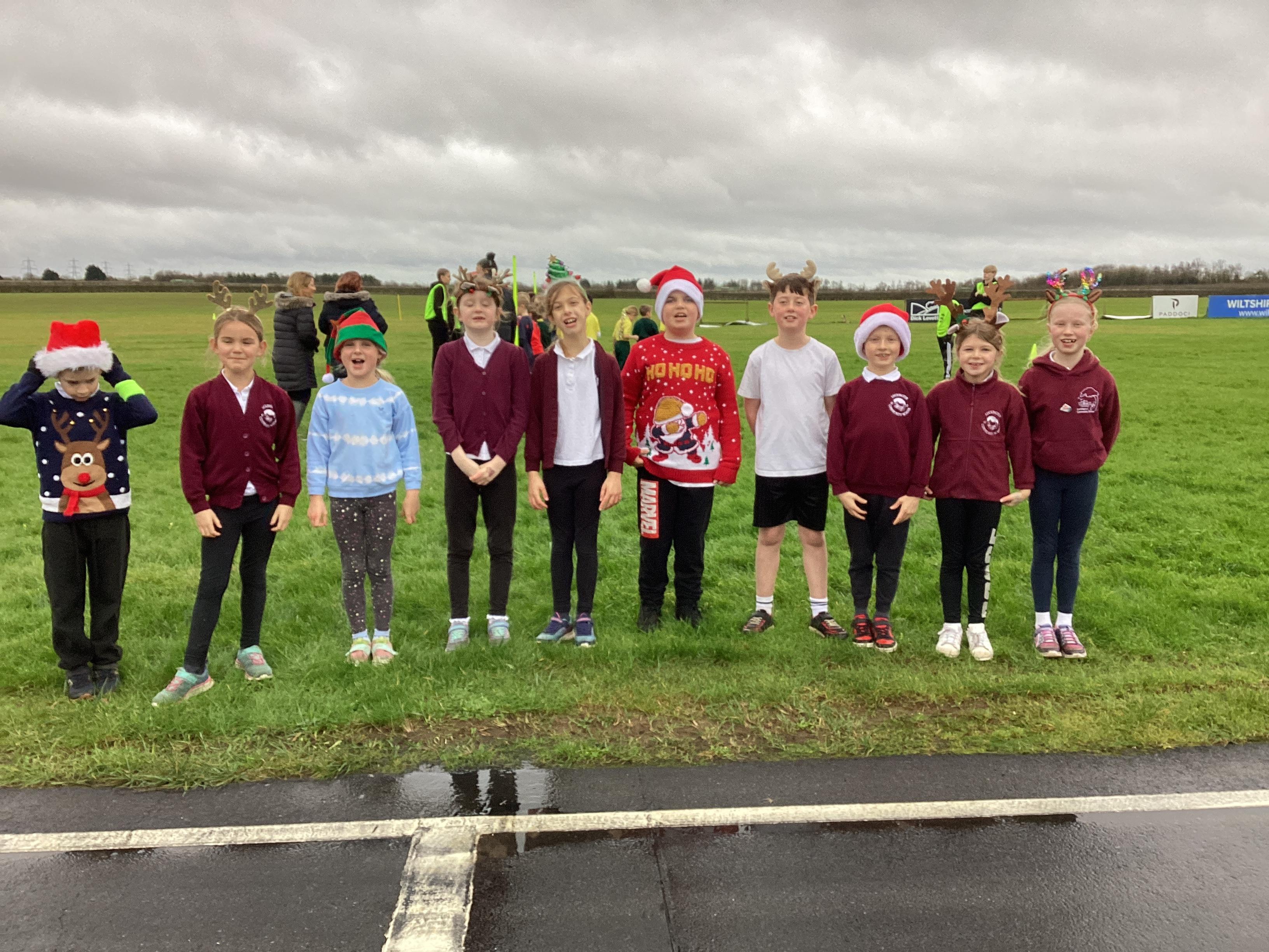 In December we took a team of children to enter a Santa Dash cross country run at Castle Combe race track. The Year 3/4 runners ran a 1 KM course and the Year 5/6 pupils ran a 2 KM course wearing Christmas headgear followed by hot chocolate and a biscuit! Our Year 3/4 pupils came third overall and received a bronze medal!